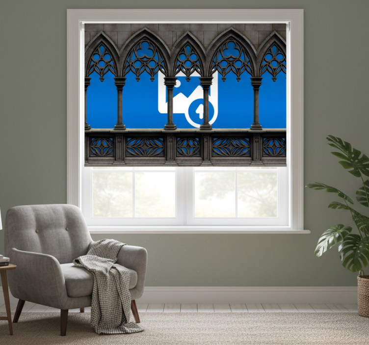 复杂的拱门创造出引人注目的设计,细致的图案让人联想到历史建筑。鲜艳的蓝色背景与石材元素优雅对比。光与影的交错突显了华丽的形状,呈现出一个视觉上引人入胜的场景,以其艺术魅力吸引观察者。