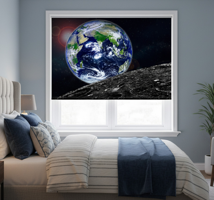 一幅令人惊叹的地球景观,鲜艳的海洋和大陆显露出复杂的地理细节。月球的表面在前景中显现,其纹理与深邃的太空背景形成对比。星星轻轻闪烁,增强了宇宙的氛围,提升了探索的感觉。