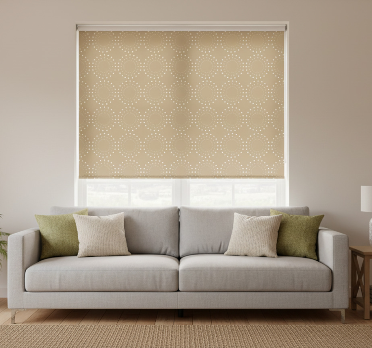 在任何房间中使用这款浅棕色的盲人,都能轻松调节室内的光线与温度。无论是卧室、客厅还是办公室,浅米色背景配白色圆圈的设计都能为空间带来舒适感,帮助您创造理想的居住或工作环境。