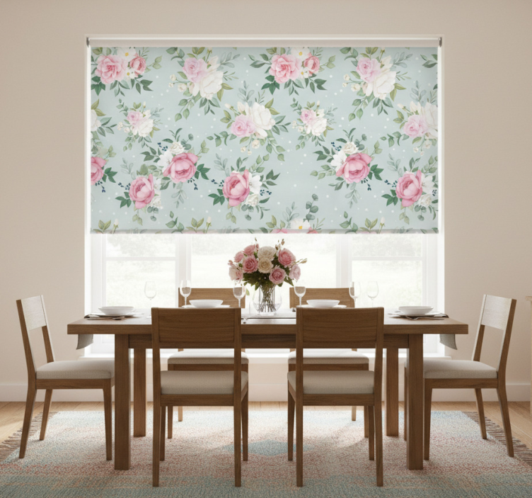 在家中,您可以将这款dining room roller blind轻松安装在窗户上,完美地融入饭厅的整体装饰风格。采用饭厅盲道蓝粉花卉设计,它不仅美观大方,还能有效调节室内光线,为您的用餐体验提供最佳的舒适度。