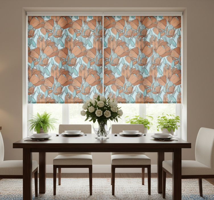 在您的家中,将dining room roller blind 饭厅盲道艺术蓝色设计的棕色郁金香安装在窗户上,不仅能有效调节室内光线,还能增加隐私保护。它的可调节性使得您可以根据需要随时改变室内亮度,营造出最理想的生活氛围。