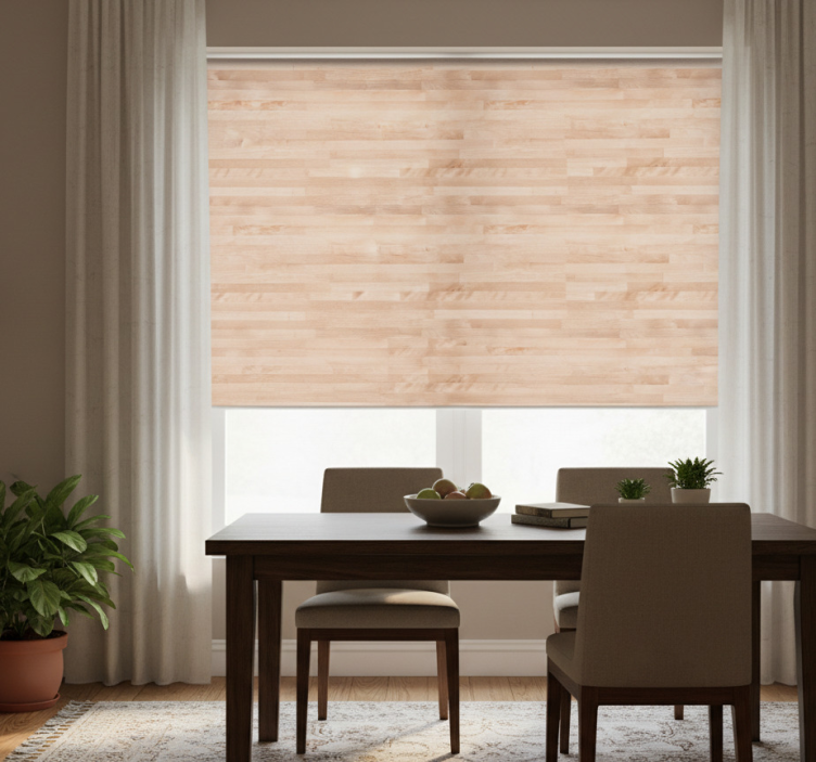 选择在我们的在线商店购买dining room roller blind,您将享受到优质的客户服务和多样的选择。我们的饭厅盲道优雅的棕色木板不仅提供完美的定制测量服务,还有三种不同纹理供您选择,以满足不同的光量和隐私需求。您只需轻松点击,即可享受便捷的购物体验。
