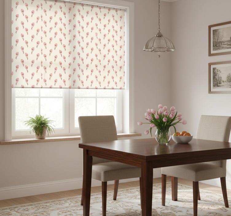 您可以将这款dining room roller blind 饭厅盲道小粉色郁金香图案轻松安装在窗户上,为房间营造出理想的光线和隐私效果。其灵活的设计允许您根据需要调节光线,既能享受温暖的阳光,又能保护您的隐私。