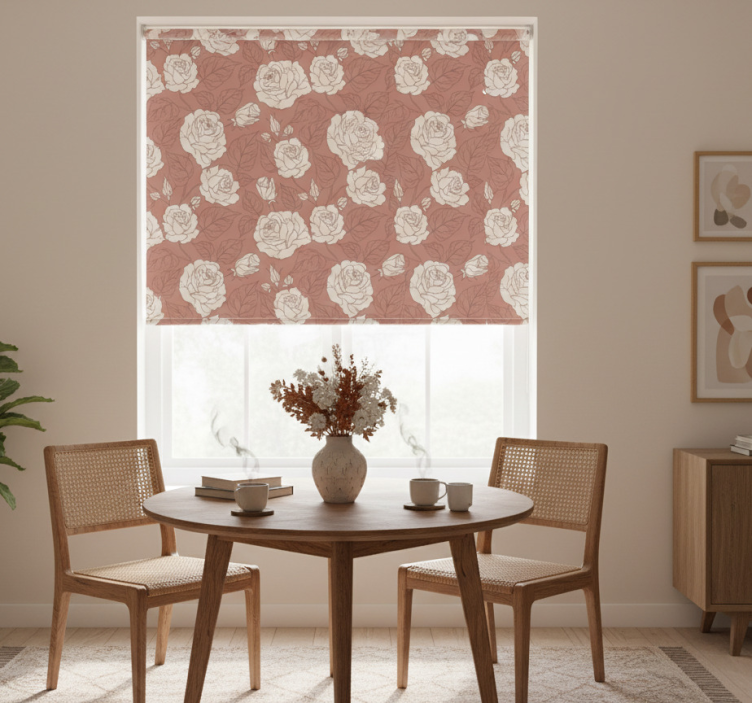 一组精致的白玫瑰在柔和的玫瑰色背景上绽放,绿叶点缀其间。这些玫瑰展现出不同的绽放阶段,为设计增添了深度和质感。这种花卉图案营造出宁静而诱人的氛围,非常适合为任何空间增添自然之美。