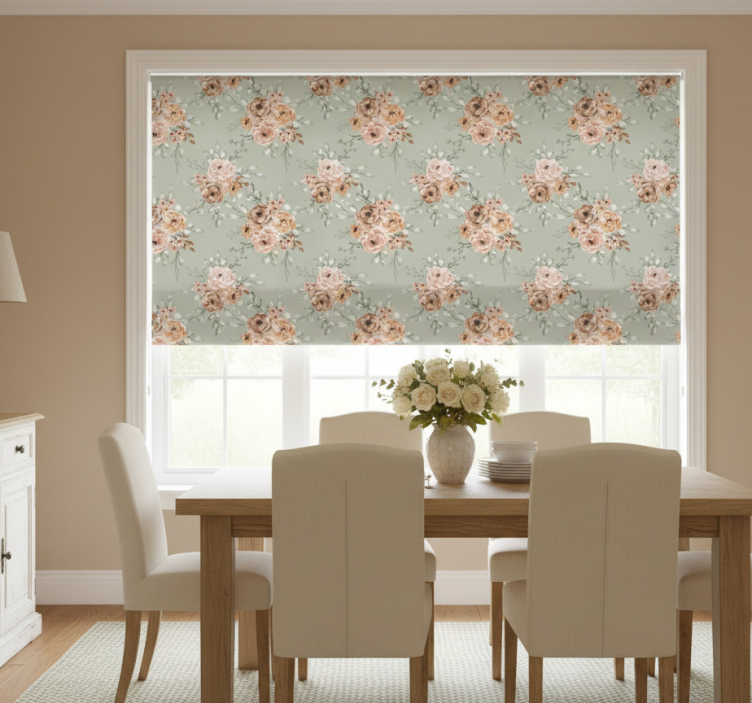 选择在我们的在线商店购买饭厅盲道,您将体验到优质的服务与便捷的购物体验。我们的饭厅盲道复古玫瑰图案薄荷绿背景不仅设计独特,还提供100%可定制测量,确保完美适配您的窗户。