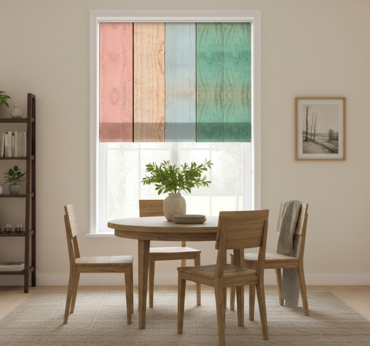 一个充满活力的排列,采用珊瑚色、浅蓝色和绿色的木板,展现出海岸风格。这种设计突出了不同的质感和色彩,带来清新的感觉。结合自然元素,唤起一种宁静的氛围,令人想起宁静的风景。
