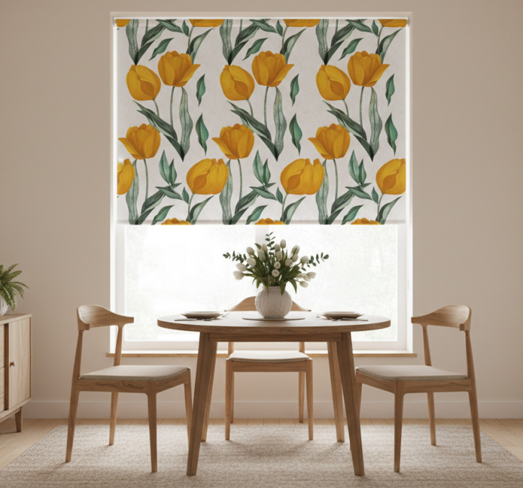 明亮的黄色郁金香优雅地从郁郁葱葱的绿叶中冒出,形成生动的花卉图案。这一迷人的设计将春天的精髓带入室内,带来愉悦的花朵,唤起快乐与重生的感觉,展现花卉的自然美。精致的布置为任何空间增添了清新的气息。