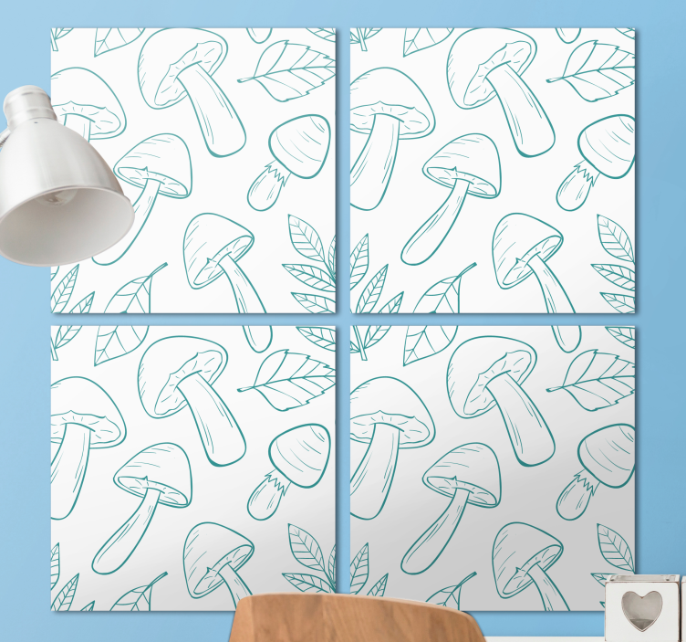 参考: Q7231一个令人愉悦的复杂图案,展示了各种蘑菇和叶子。设计融合了有机形状,突显了自然的美。每个蘑菇都用细线描绘,周围环绕着不同类型的叶子,形成和谐的植物组合。
