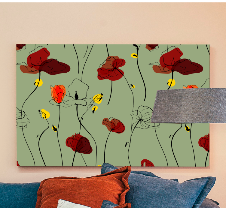 参考: Q6897这个复杂的设计展示了红色、黄色和白色的罂粟花在柔和的绿色背景下精致的排列。流畅的线条和有机的形状创造出一种动态的构图,唤起了运动和生命的感觉,非常适合为室内带来新鲜的自然气息。