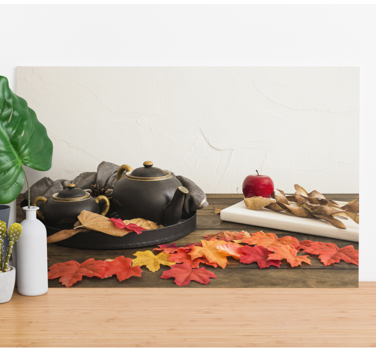 参考: Q5848这个温馨的布置展示了秋天的温暖色调,搭配了一套深色茶壶,周围点缀着鲜艳的叶子和光亮的红苹果。质朴的木质表面增添了季节的魅力,营造出一种温馨的氛围,庆祝秋天的本质。
