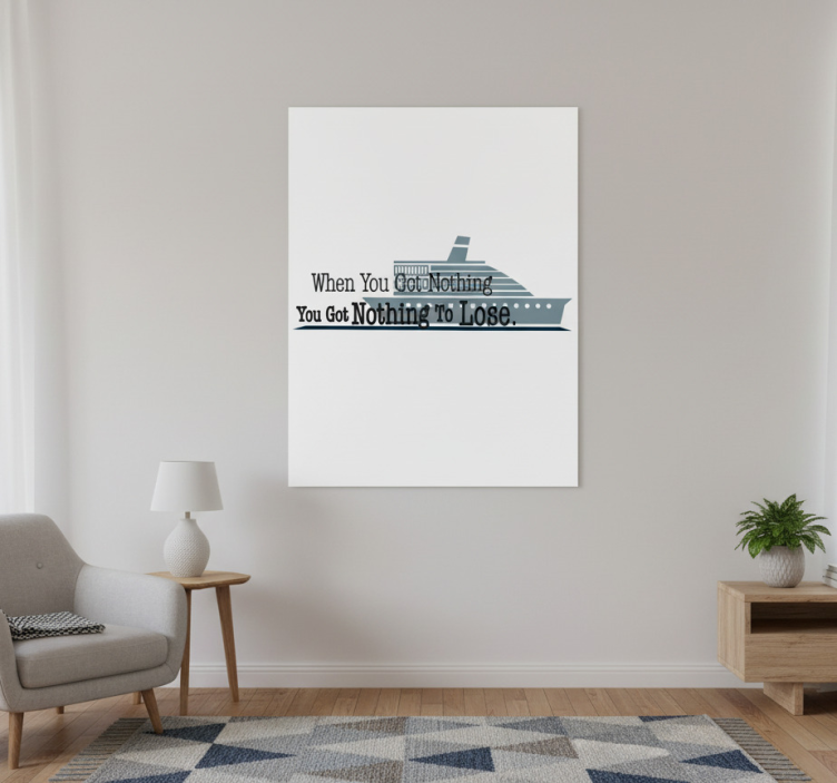 这幅艺术作品展现了一艘风格化的游轮,并配有一句励志的名言。该短语强调了一种自由和机会的心态,暗示拥有少量资源也能带来巨大的前景。其简约的设计为作品增添了现代感,使其适合各种室内空间。