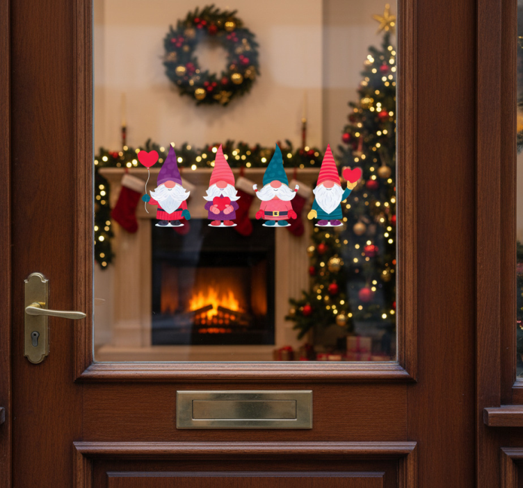 四个古怪的小矮人被描绘出来,每个都有顽皮的表情和独特的配饰,如"hearts"和"balloons"。这个设计捕捉了欢乐和陪伴的精神。这一迷人的组合反映了爱与团结的重要性,使其成为节日场合的一个令人愉快的补充。