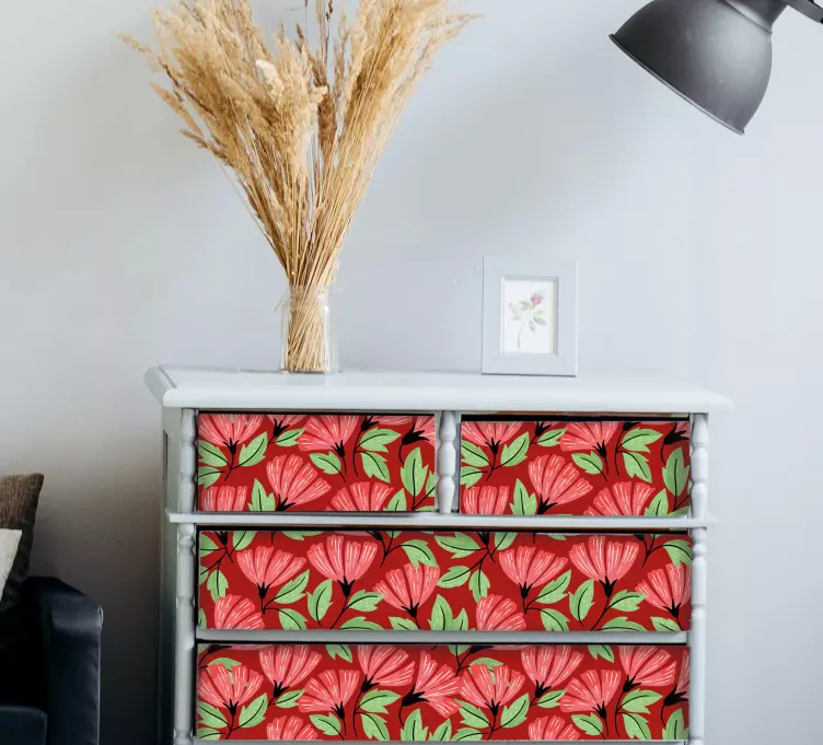 表面装饰着生动的花卉图案,拥有大瓣和对比鲜明的叶子。这种设计提升了家具的美感,为室内带来了自然气息,反映出一种充满活力和清新的氛围。