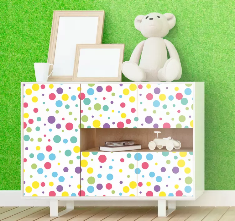 一个引人注目的图案,采用各种颜色的生动圆点,非常适合为家具增添趣味。这个设计营造出一种愉快的氛围,是儿童空间或现代室内的理想选择。