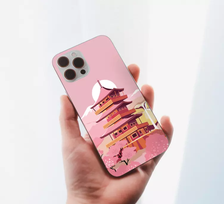 一幅宁静的图景,描绘了一座被樱花和山脉环绕的宝塔。宜人的粉色调营造出一种宁静的氛围。这一设计完美捕捉了文化景观的精髓,是欣赏日本美学的理想选择。