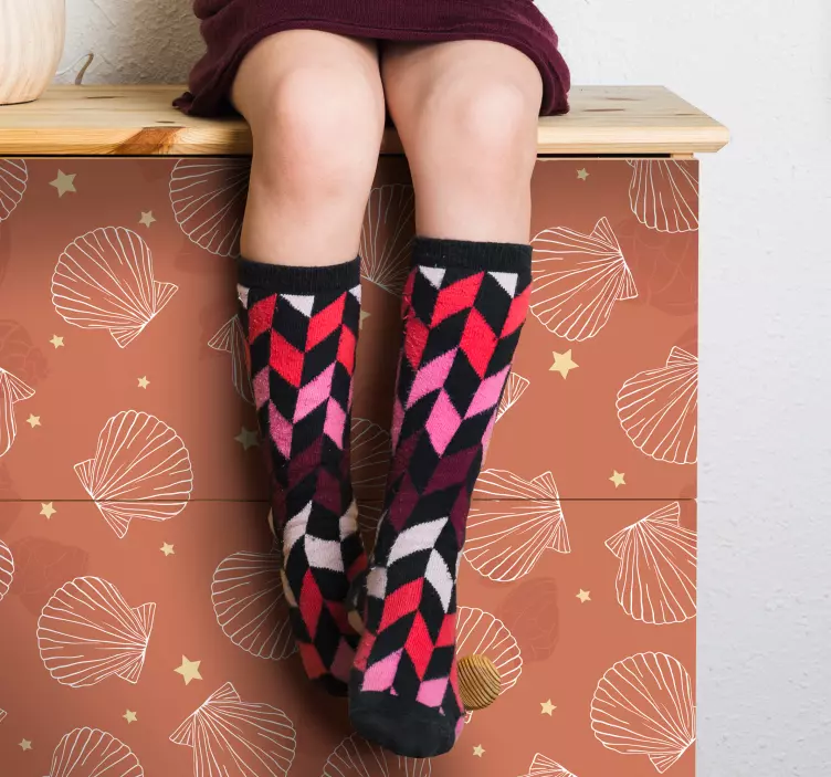 您可以从我们的在线商店购买装饰性家具贴纸,并在几天之内收到。让您的家具焕发新的生机,快来选购贝壳和星星贴花家具贴纸吧!