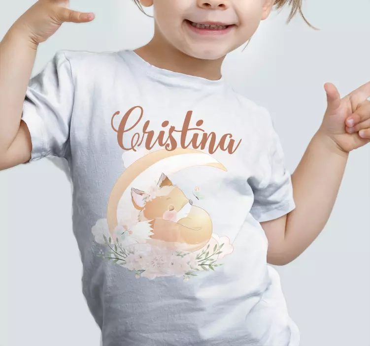 儿童t恤与名字的睡觉狐狸图案