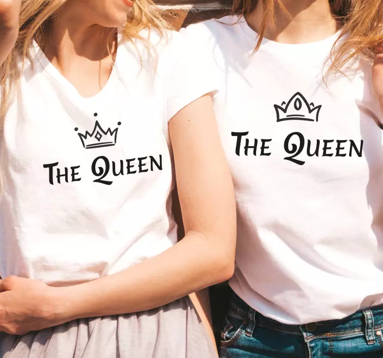 这张图片展示了母女之间温馨的时刻,母女俩都穿着匹配的服装,上面骄傲地印着短语'The Queen'。这种俏皮的设计,配以王冠,象征着她们之间特殊的纽带和共同的快乐时光。