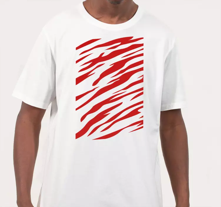 这款t恤衫大胆红色条纹以其独特的设计吸引着每一个目光。鲜艳的红色条纹与生动的老虎图案形成鲜明对比,展现出一种时尚而现代的形象。无论是在悠闲的午后还是时尚的聚会中,这款T恤都能让您充满活力,展现出您独特的个性!