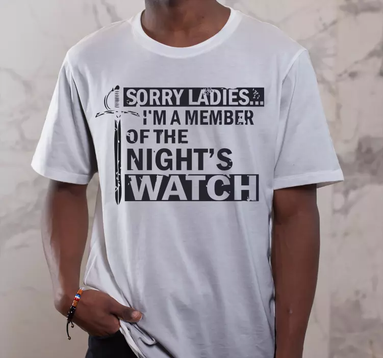 这件白色衬衫以大胆的声明强调了对夜间守望者的归属,并配有引人注目的剑图案。非常适合那些希望幽默地展示自己粉丝身份,同时享受舒适休闲服的人。