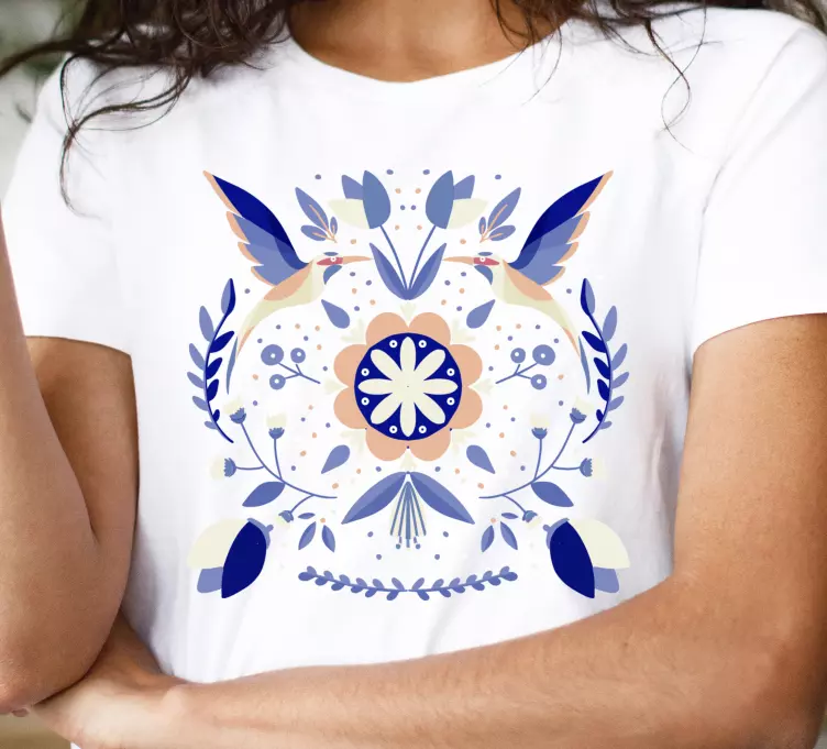 欢迎来到我们的T恤衫花鸟图案设计系列!这款独特的设计将抛光的花朵与民俗学和传统元素相结合,展现出丰富多彩的鸟类和自然的美感。每一件T恤都具有装饰性的异想天开风格,时髦而又充满活力,让您在日常穿搭中脱颖而出!
