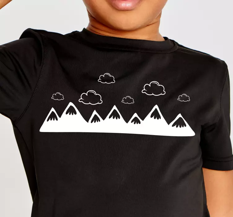 这个设计展示了山脉和云朵的有趣表现,完美适合喜欢冒险的精神。对比色彩增强了视觉吸引力,使其成为热爱自然和探索的孩子们的有趣选择。