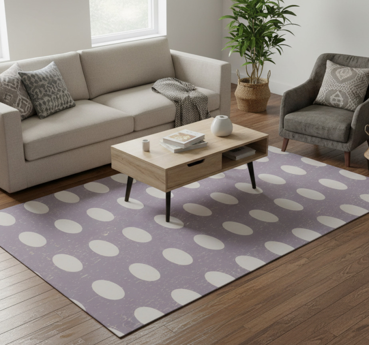 设计采用柔和的薰衣草色背景,点缀着交替的白色椭圆形。这些椭圆形均匀分布,大小各异,形成一种有节奏的图案。表面具有微妙的纹理效果,增强了视觉趣味,同时保持了现代美感。