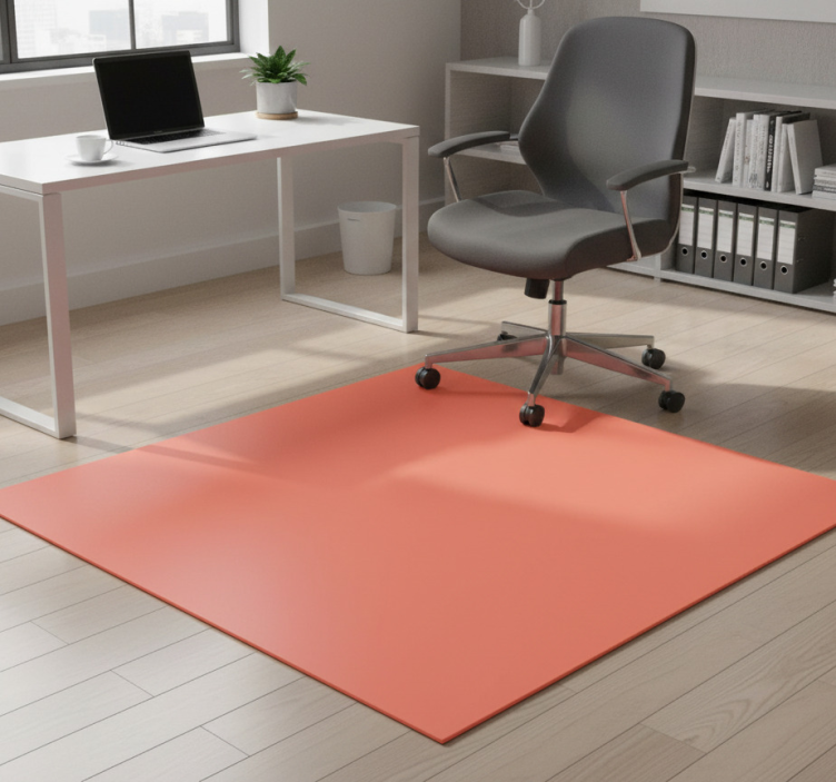 这幅图像展示了一块大型矩形地毯,呈现出鲜艳的珊瑚色。它光滑的表面显得时尚现代,形成了一个引人注目的视觉元素。在地毯周围是一些极简主义的家具,线条简洁,色调中性,恰到好处地衬托了地毯的夺目颜色。