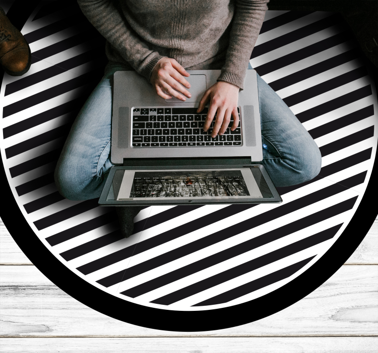 参考: R19725这个圆形设计以交替的黑白条纹为特色,营造出动态的视觉效果。流畅的线条均匀,展现出现代美学,既大胆又精致,适合多种装饰风格。