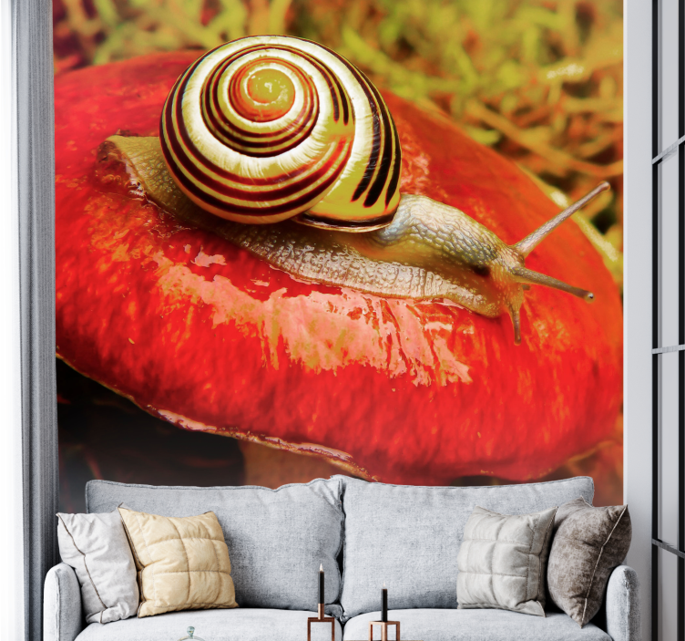 在这幅独特的壁画中,您将欣赏到蜗牛悠闲地爬行在色彩斑斓的蘑菇之间,仿佛在自然的怀抱中徜徉。设计巧妙地将自然元素与摄影艺术结合,营造出一种宁静而迷人的氛围。每一个细节都经过精心打磨,展现出蜗牛与蘑菇之间的奇妙互动,仿佛诉说着自然界中的小故事。
