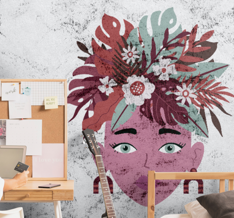 选择我们在线商店购买people wall mural与人物照片墙与风格化花卉头饰,您将获得高品质的艺术作品,采用无纺布壁纸,耐久性可达10-15年。我们的产品不仅美观,还易于清洁,使用湿布和少许中性肥皂即可。让您的墙面焕然一新,尽在我们这里!